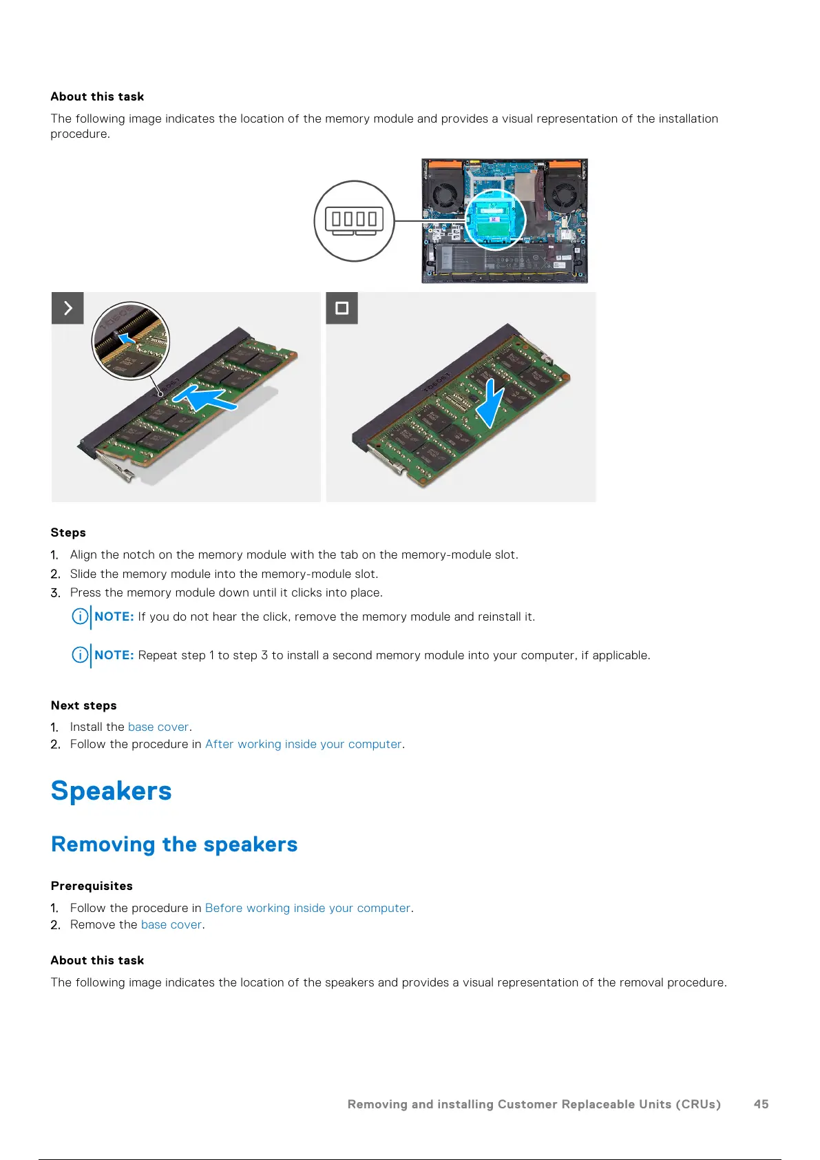 NOTE: If you do not hear the click, remove the memory module and reinstall it.