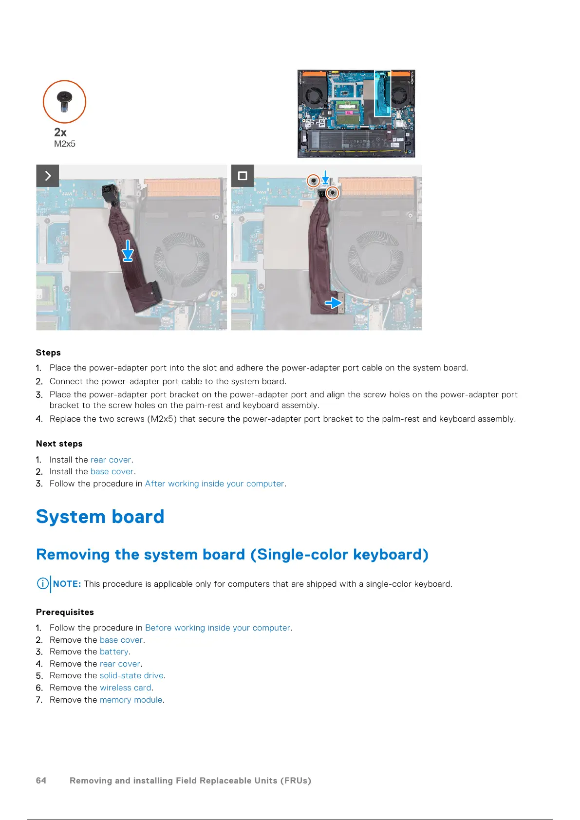 2. Connect the power-adapter port cable to the system board.