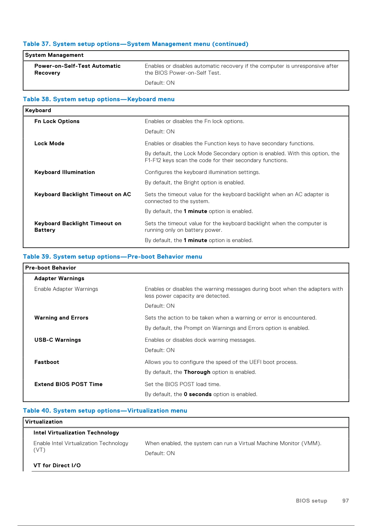 Table 39. System setup options—Pre-boot Behavior menu