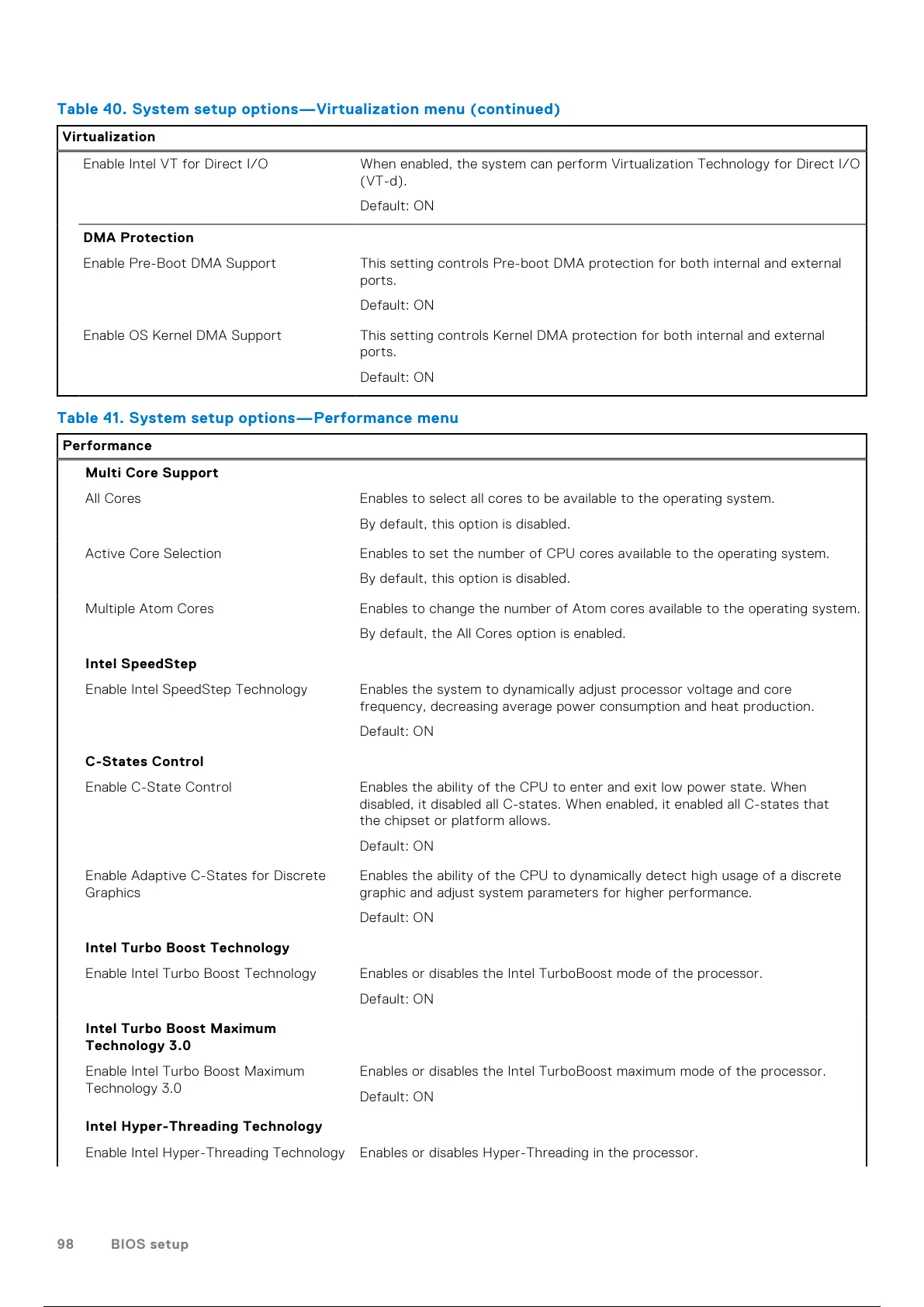 Enable Intel VT for Direct I/O When enabled, the system can perform Virtualization Technology for Direct I/O