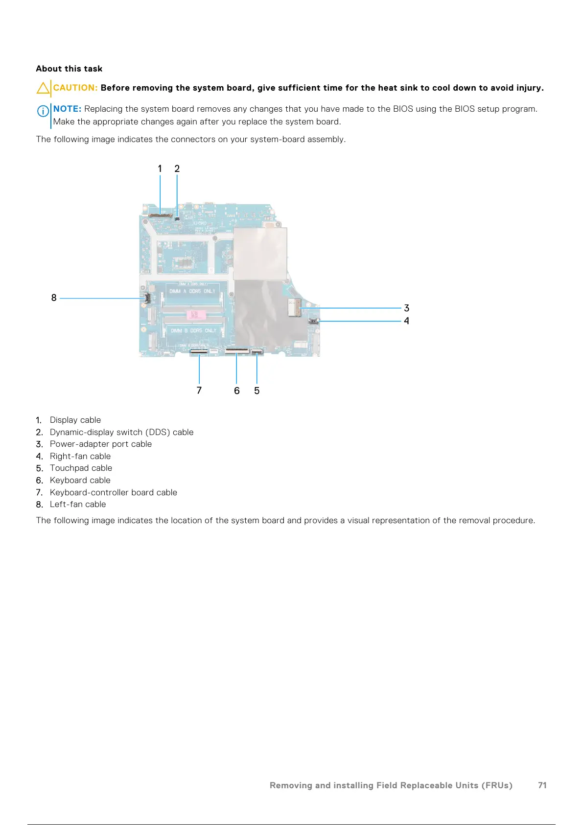 Make the appropriate changes again after you replace the system board.