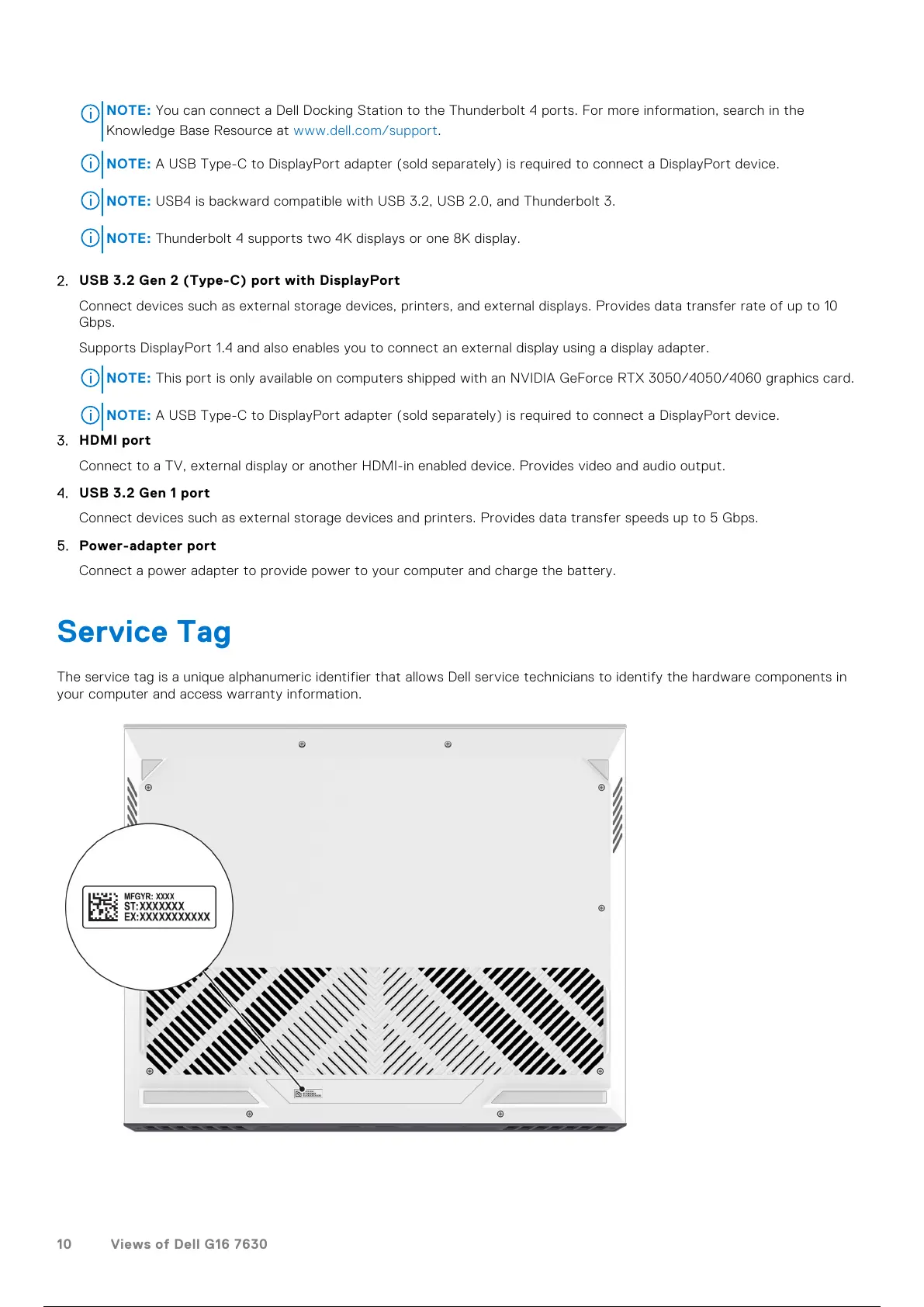 NOTE: You can connect a Dell Docking Station to the Thunderbolt 4 ports. For more information, search in the