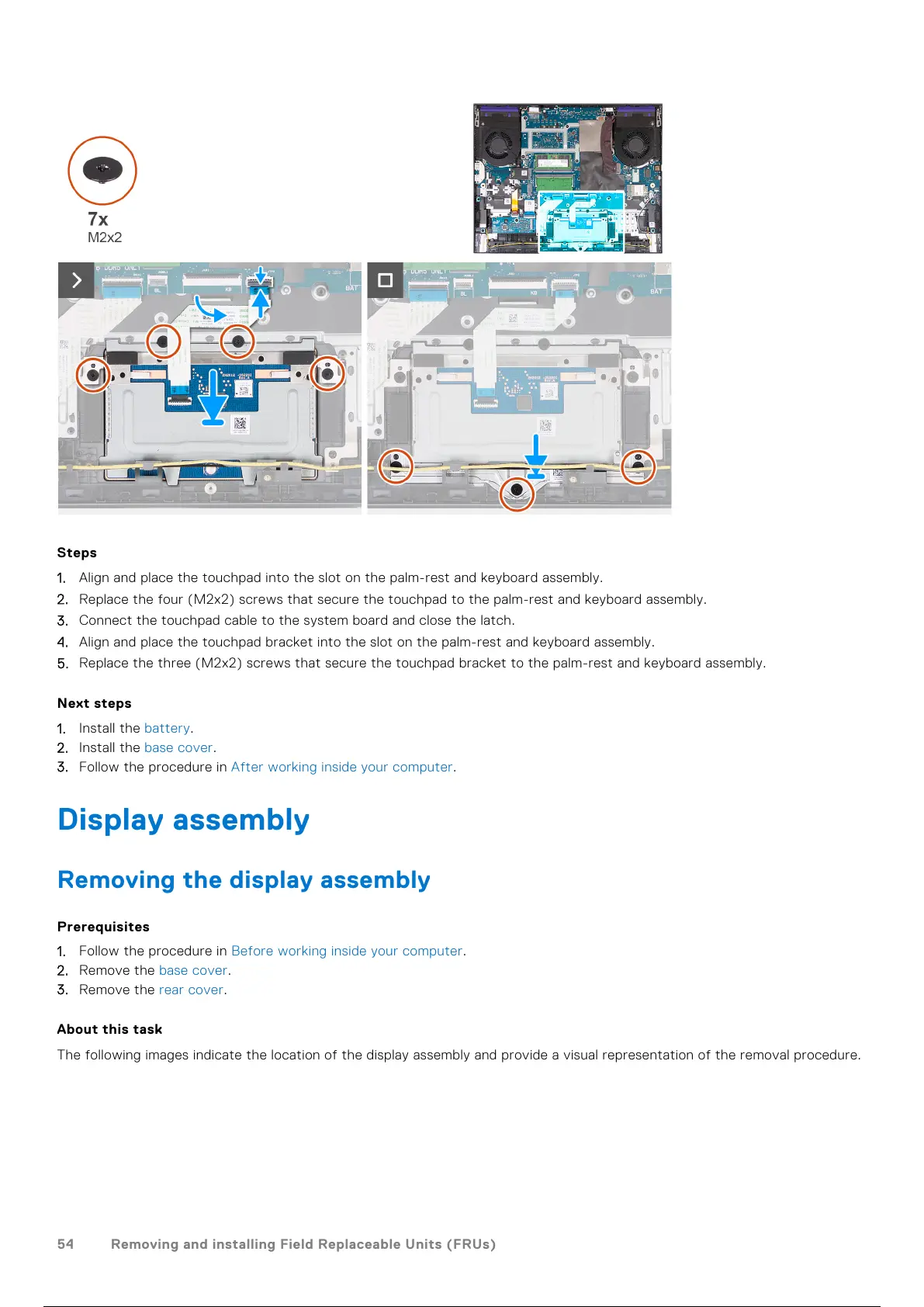 2. Replace the four (M2x2) screws that secure the touchpad to the palm-rest and keyboard assembly.