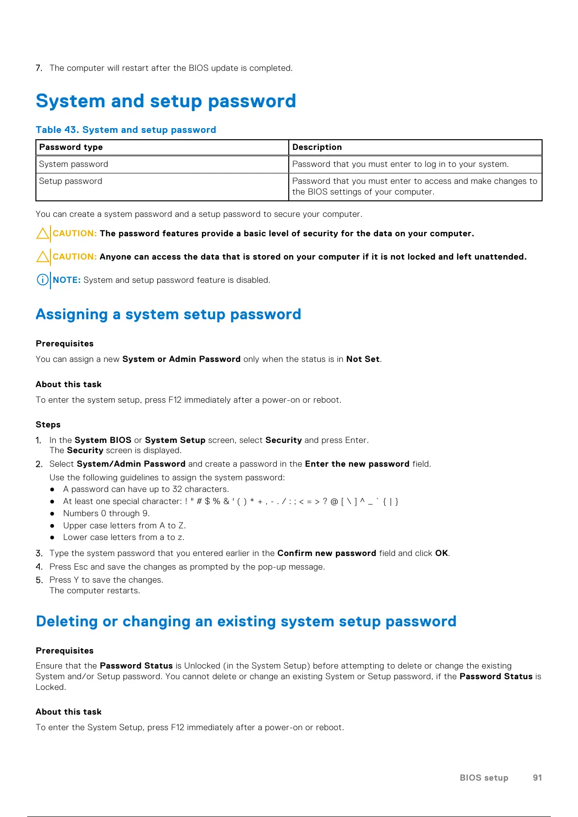 Table 43. System and setup password