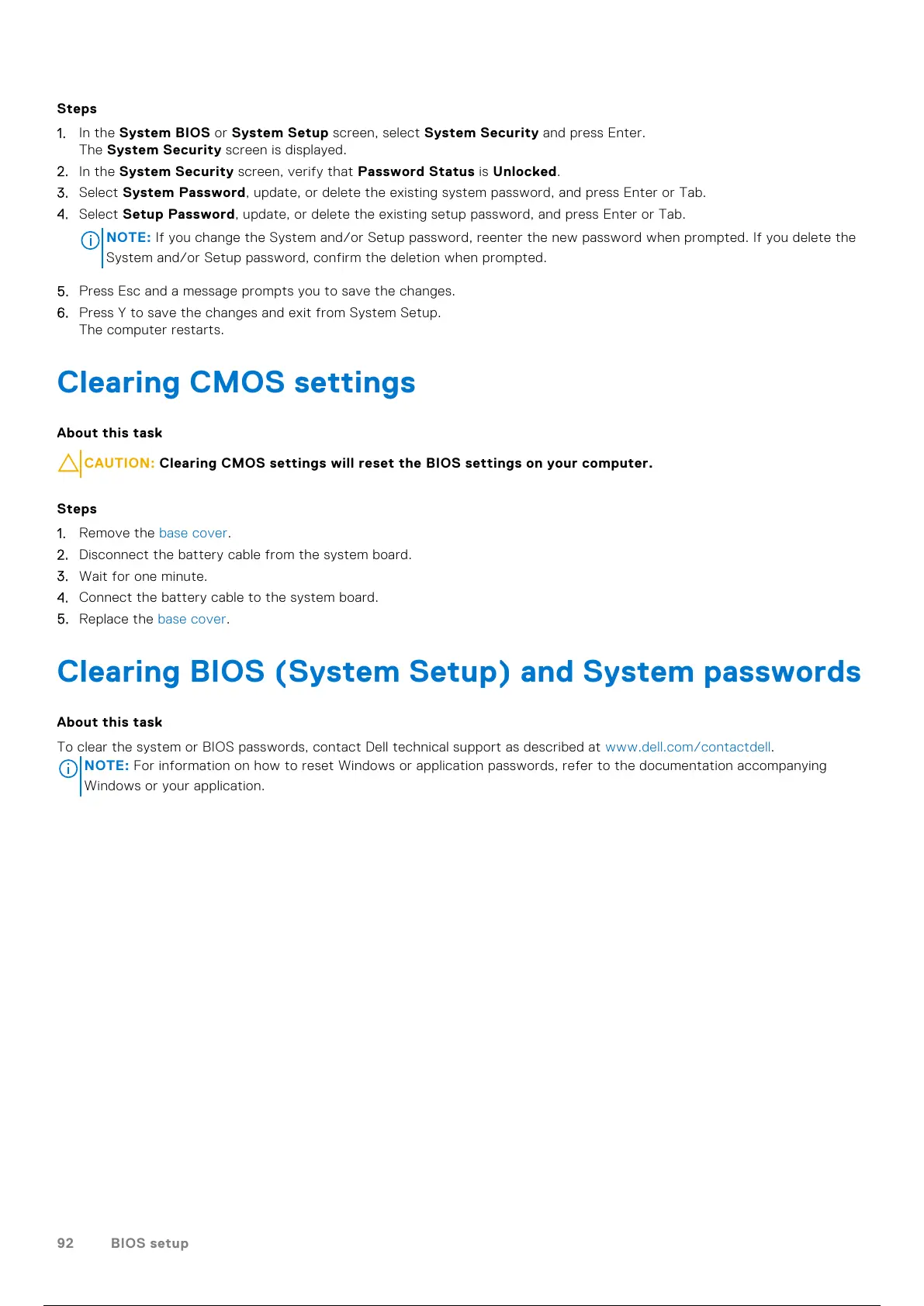 Dell NOT22114 - Clearing CMOS Settings; Clearing BIOS (System Setup) and System Passwords