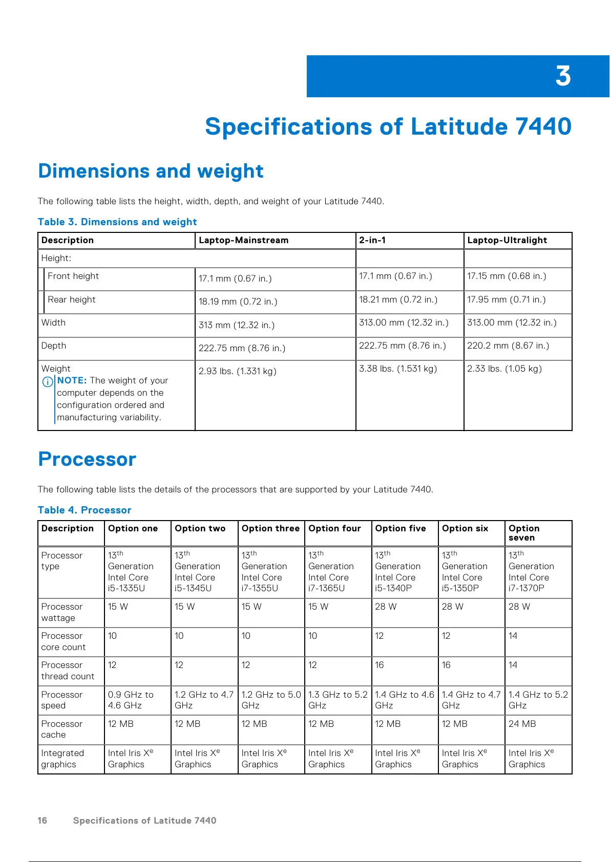 16 Specifications of Latitude 7440