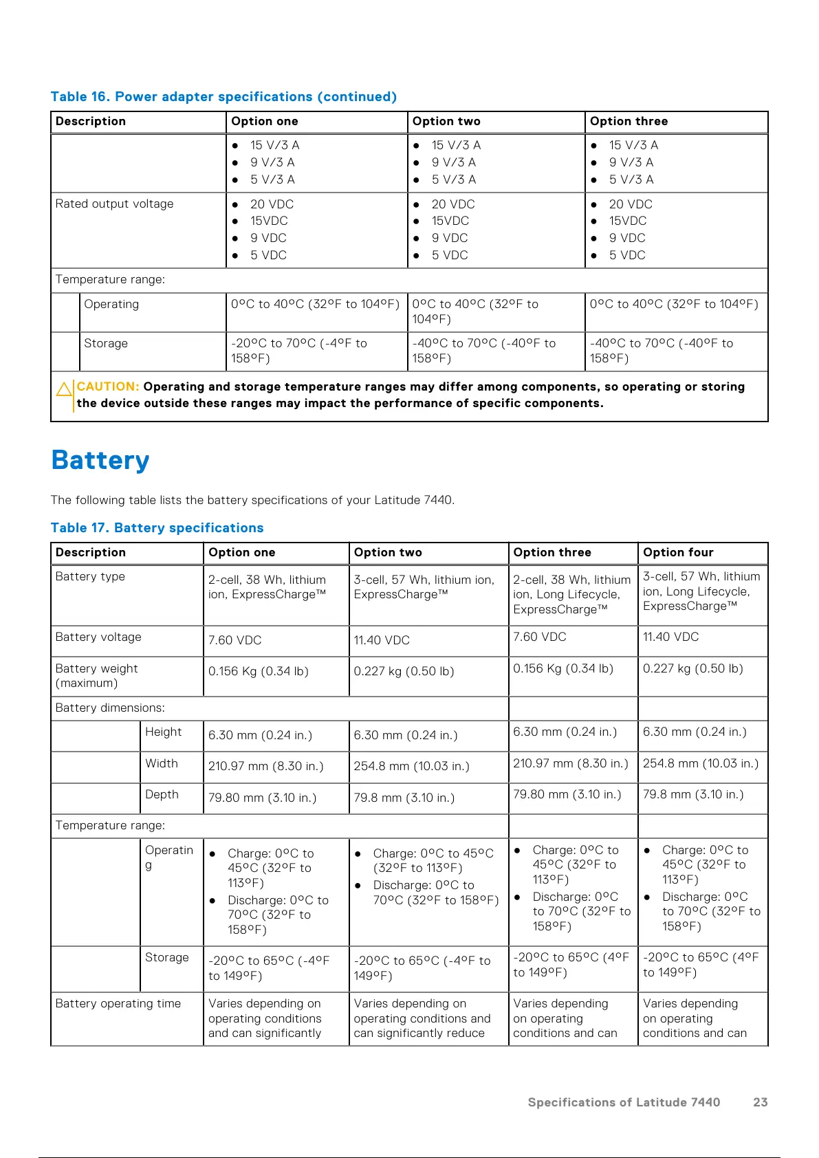 Operating 0°C to 40°C (32°F to 104°F) 0°C to 40°C (32°F to