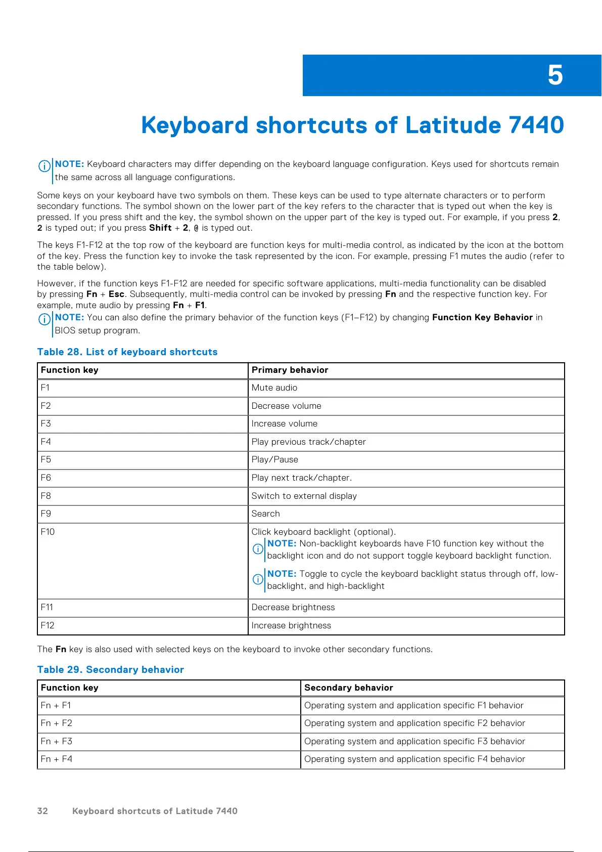 32 Keyboard shortcuts of Latitude 7440