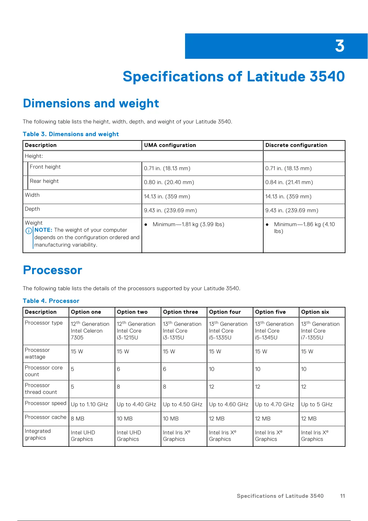 Specifications of Latitude 3540 11