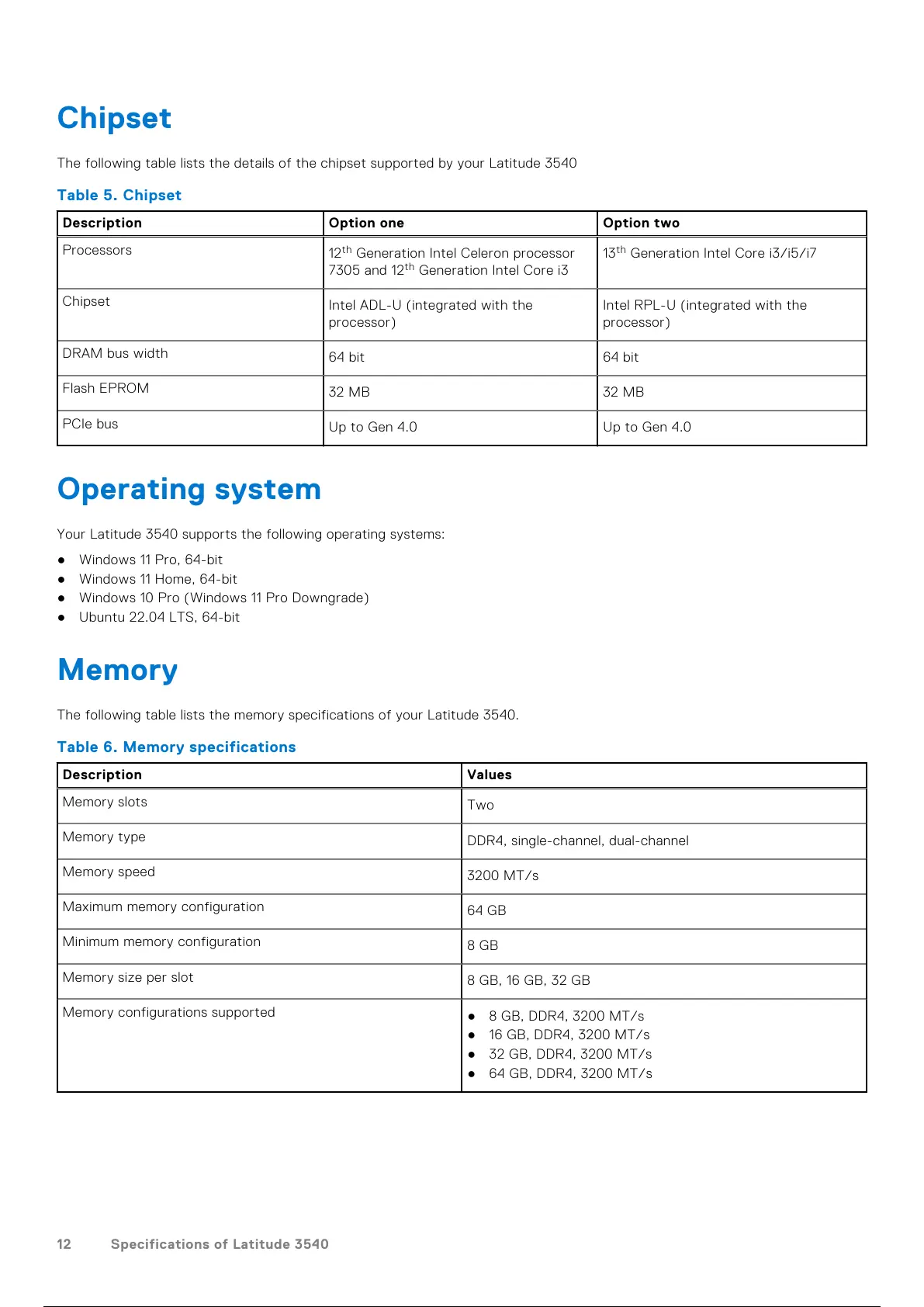 12 Specifications of Latitude 3540
