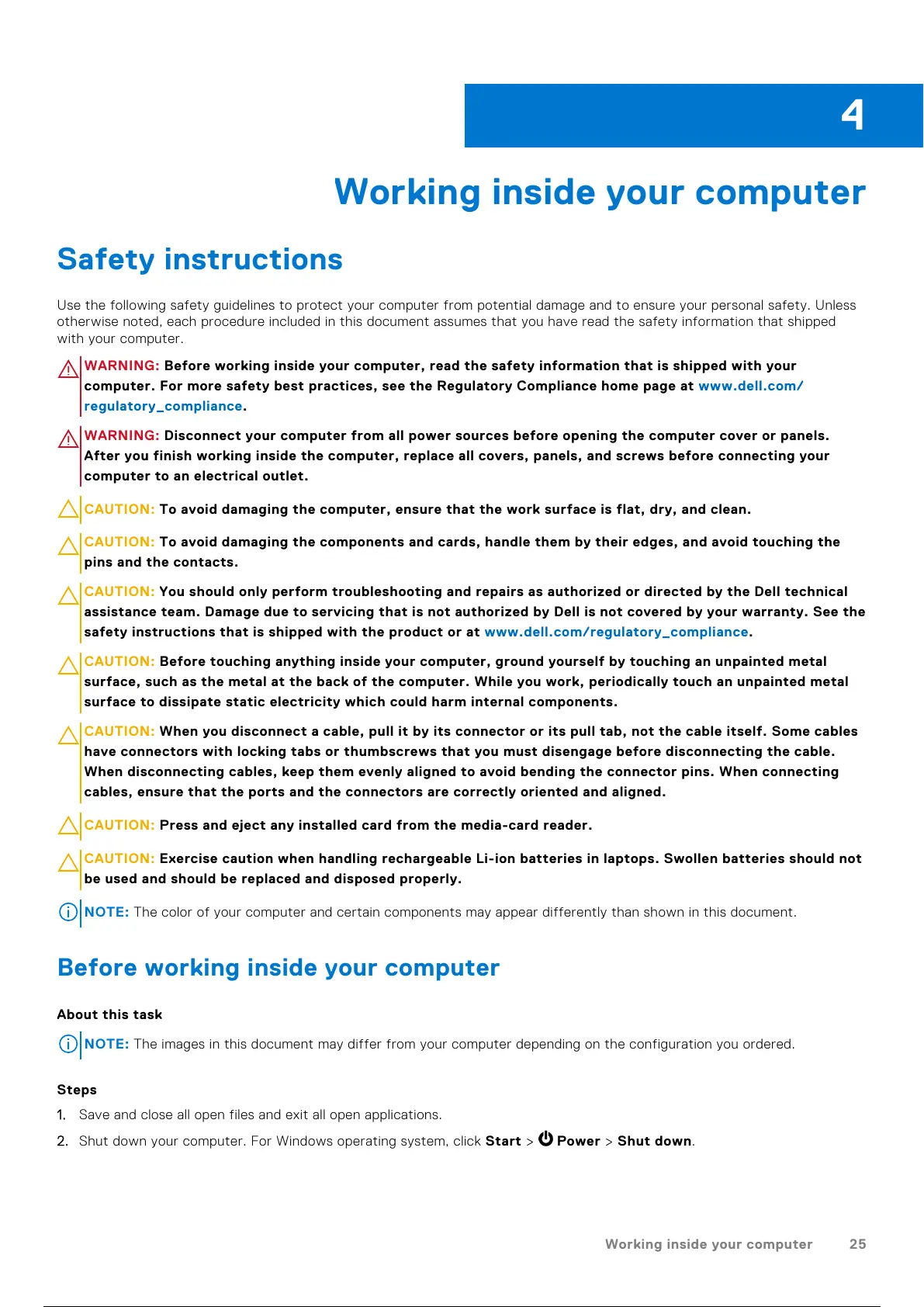 computer. For more safety best practices, see the Regulatory Compliance home page at www.dell.com/