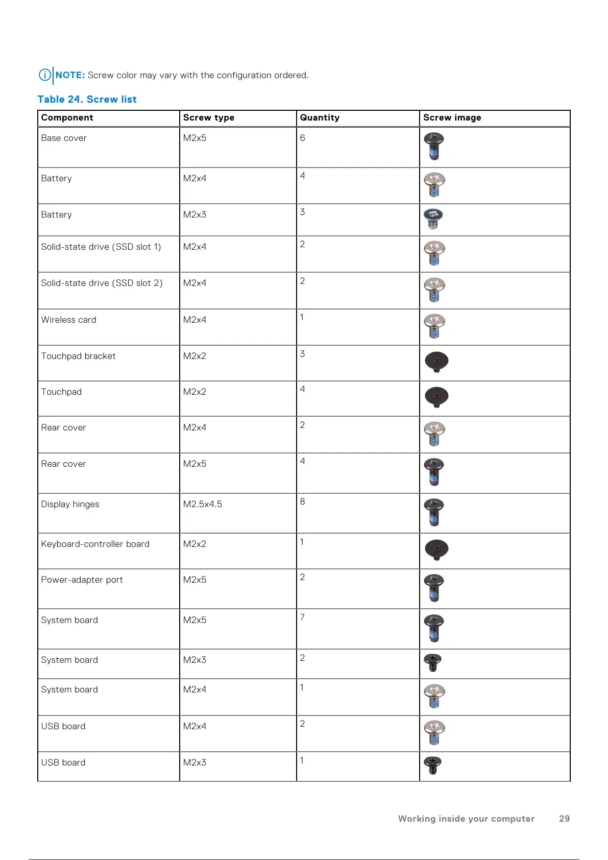 NOTE: Screw color may vary with the configuration ordered.