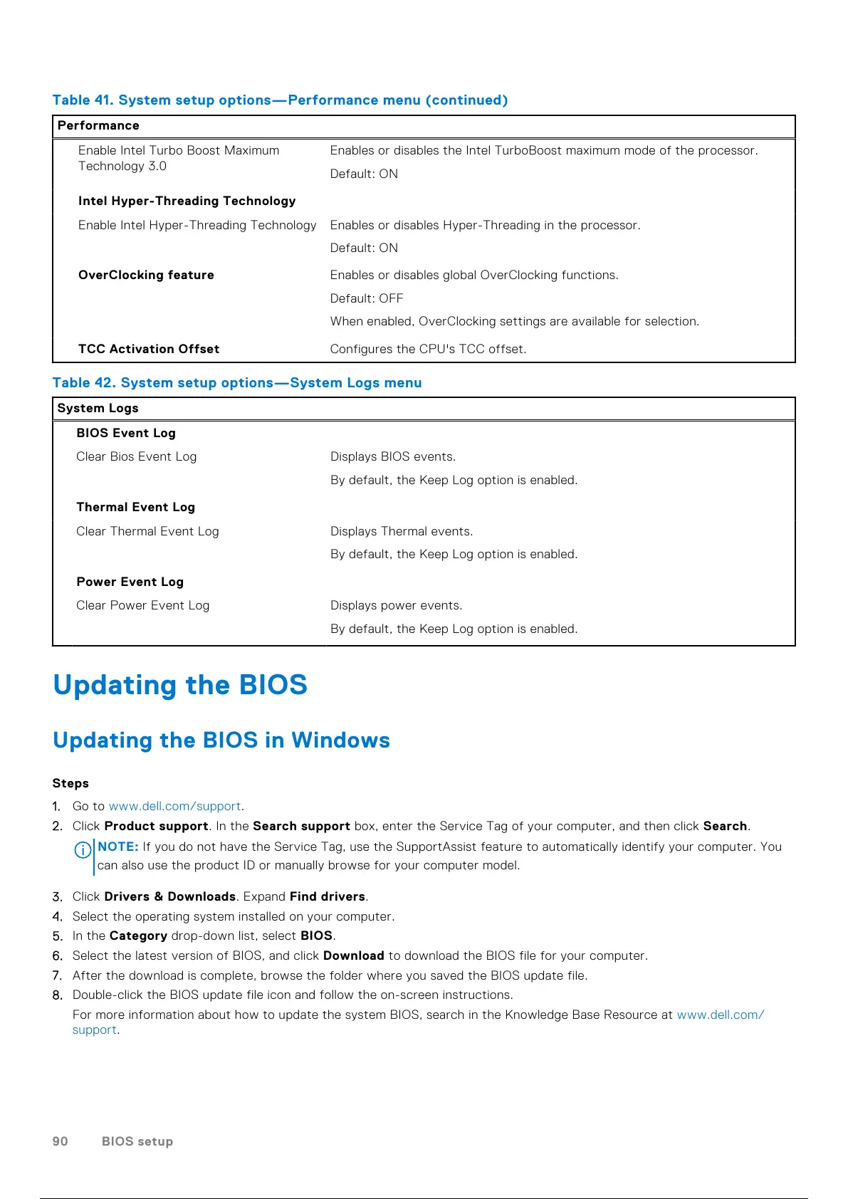 For more information about how to update the system BIOS, search in the Knowledge Base Resource at www.dell.com/
