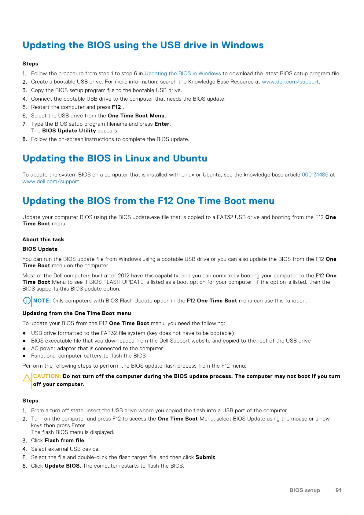 NOTE: Only computers with BIOS Flash Update option in the F12 One Time Boot menu can use this function.