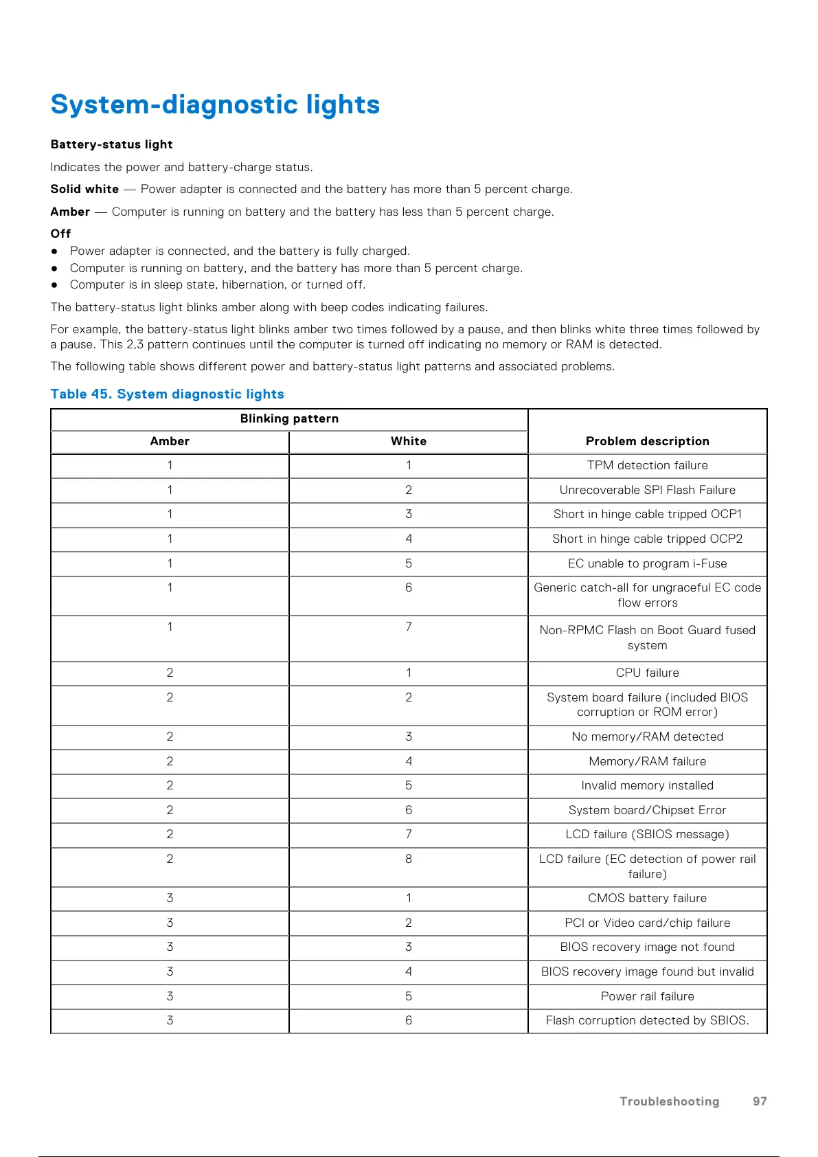 For example, the battery-status light blinks amber two times followed by a pause, and then blinks white three times followed by