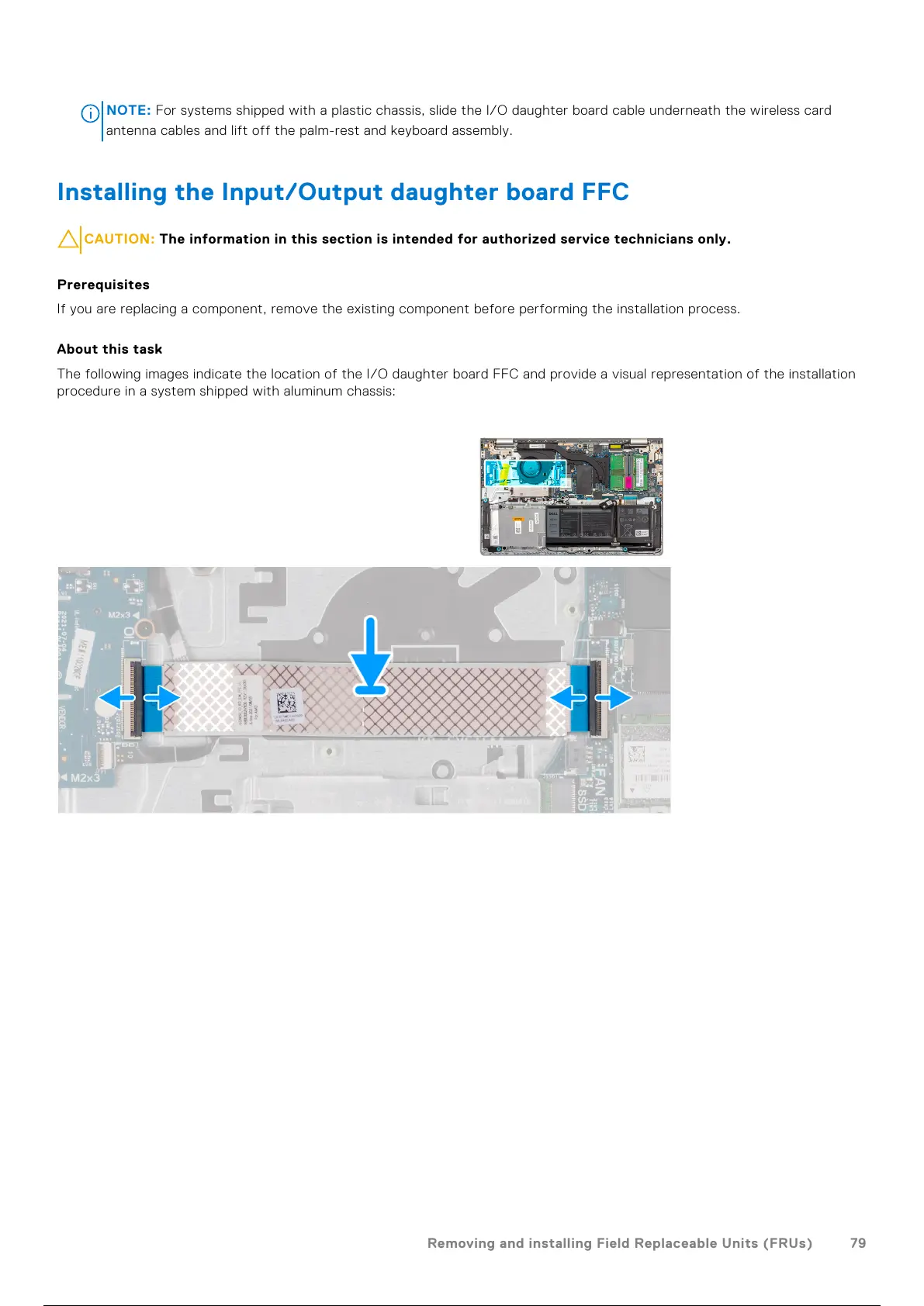 The following images indicate the location of the I/O daughter board FFC and provide a visual representation of the installation