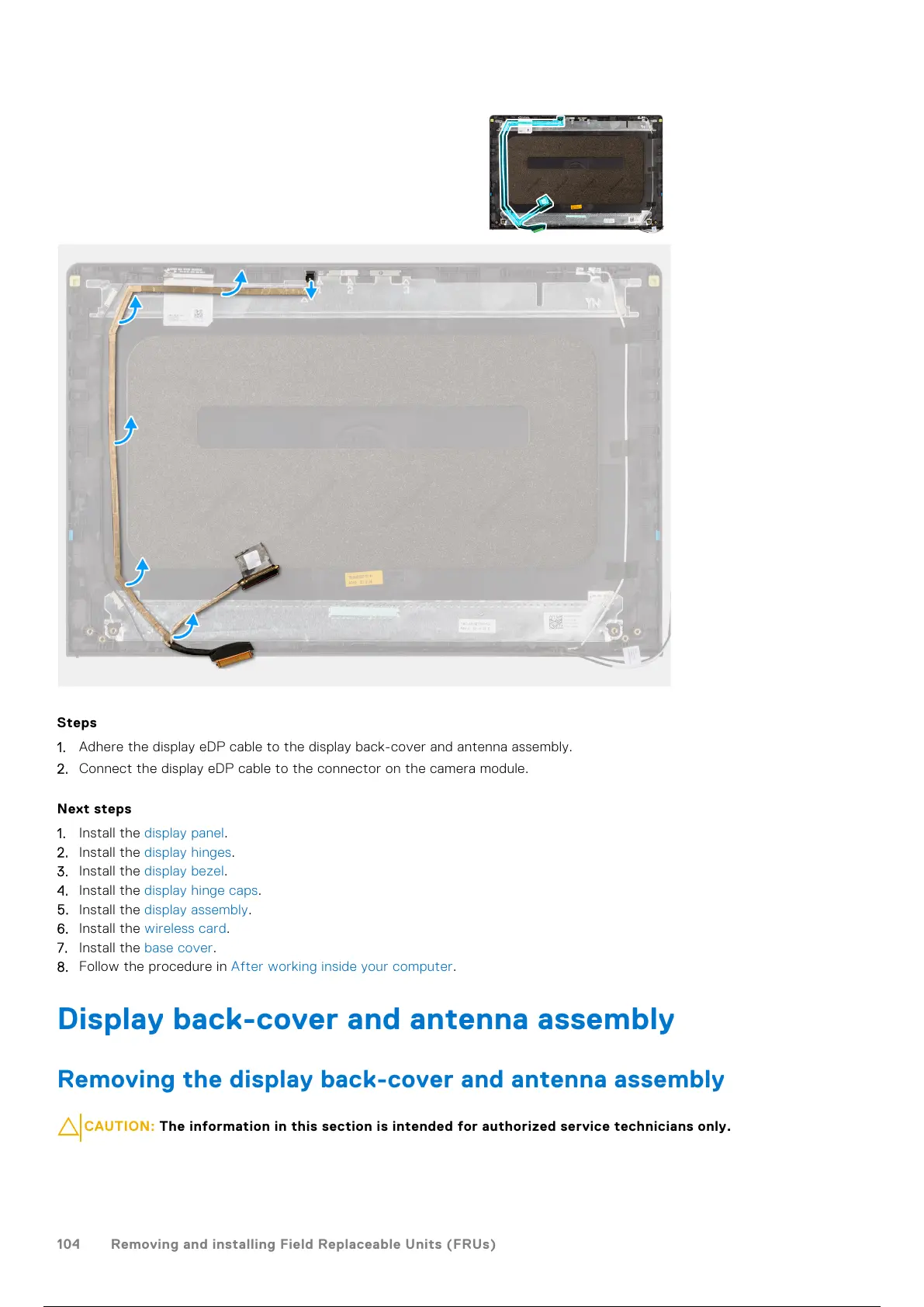 1. Adhere the display eDP cable to the display back-cover and antenna assembly.