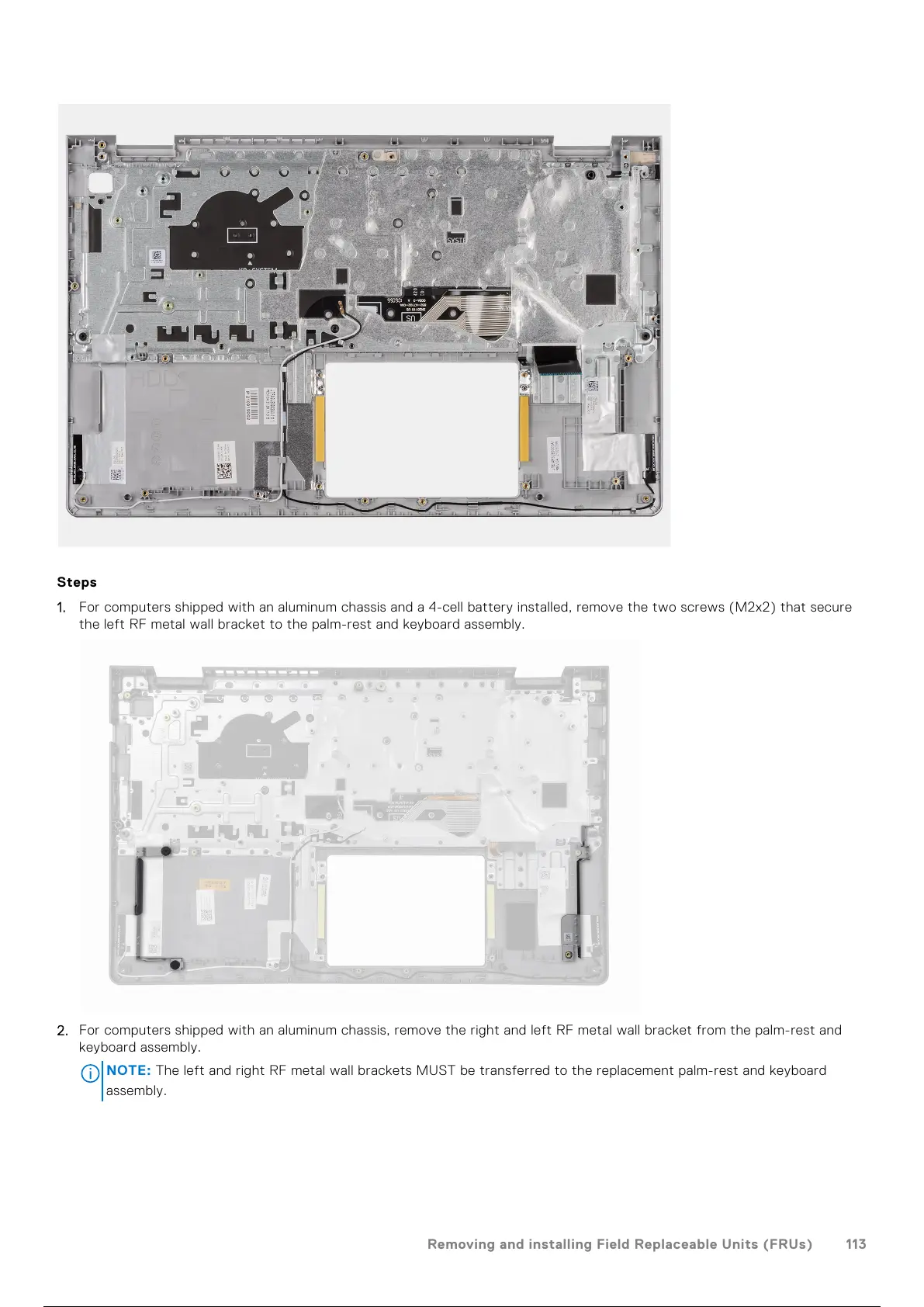 The left and right RF metal wall brackets MUST be transferred to the replacement palm-rest and keyboard