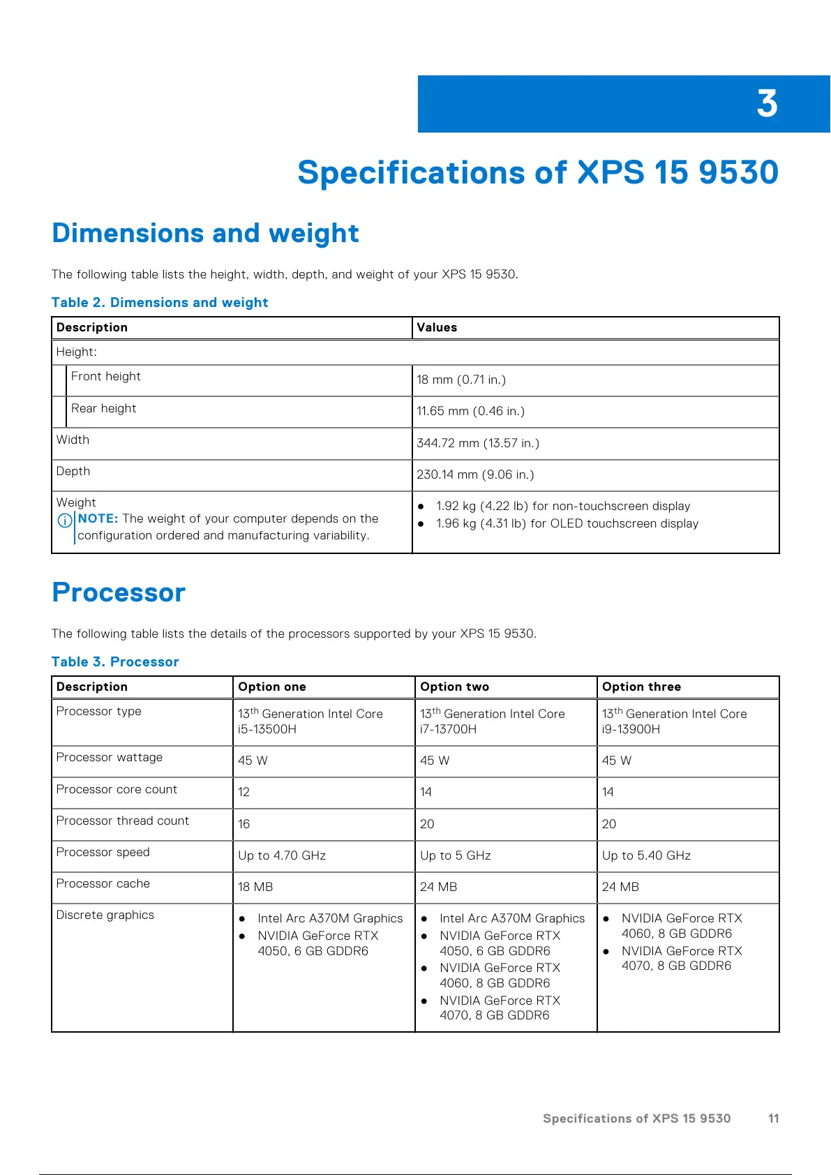 Specifications of XPS 15 9530 11