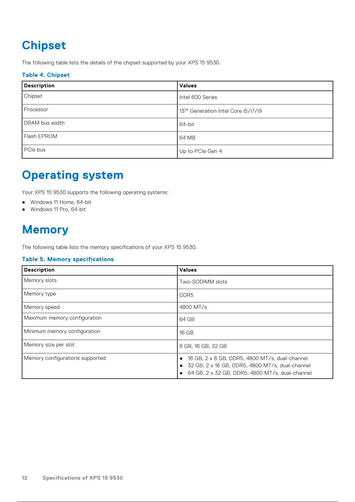 12 Specifications of XPS 15 9530