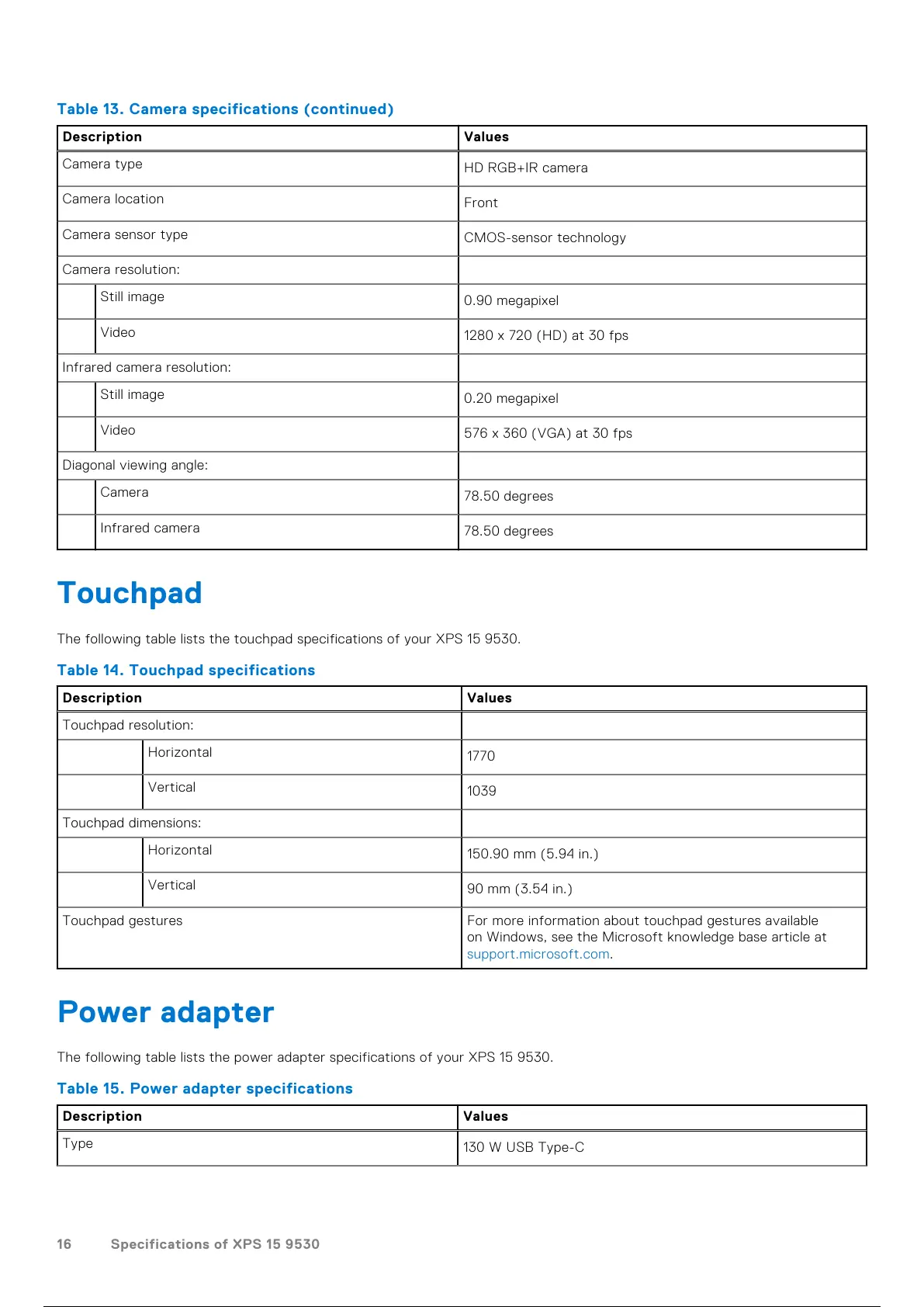16 Specifications of XPS 15 9530