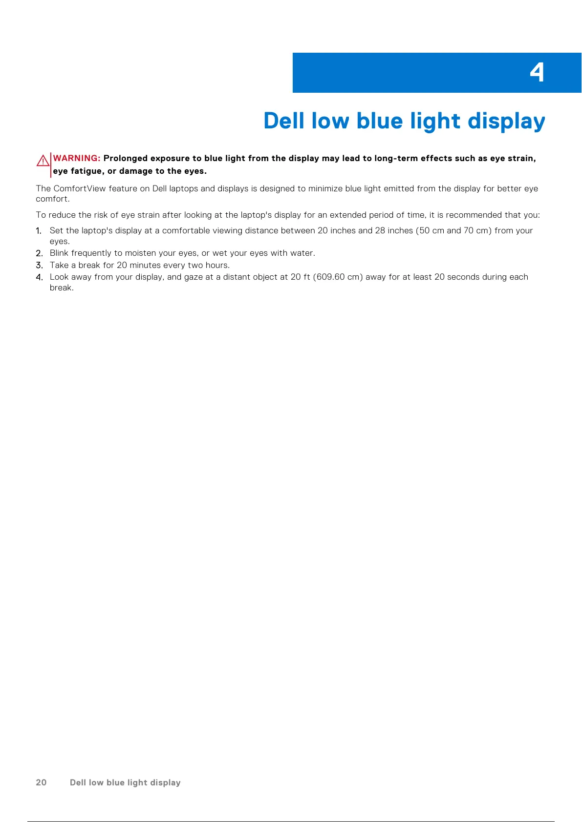 4. Look away from your display, and gaze at a distant object at 20 ft (609.60 cm) away for at least 20 seconds during each