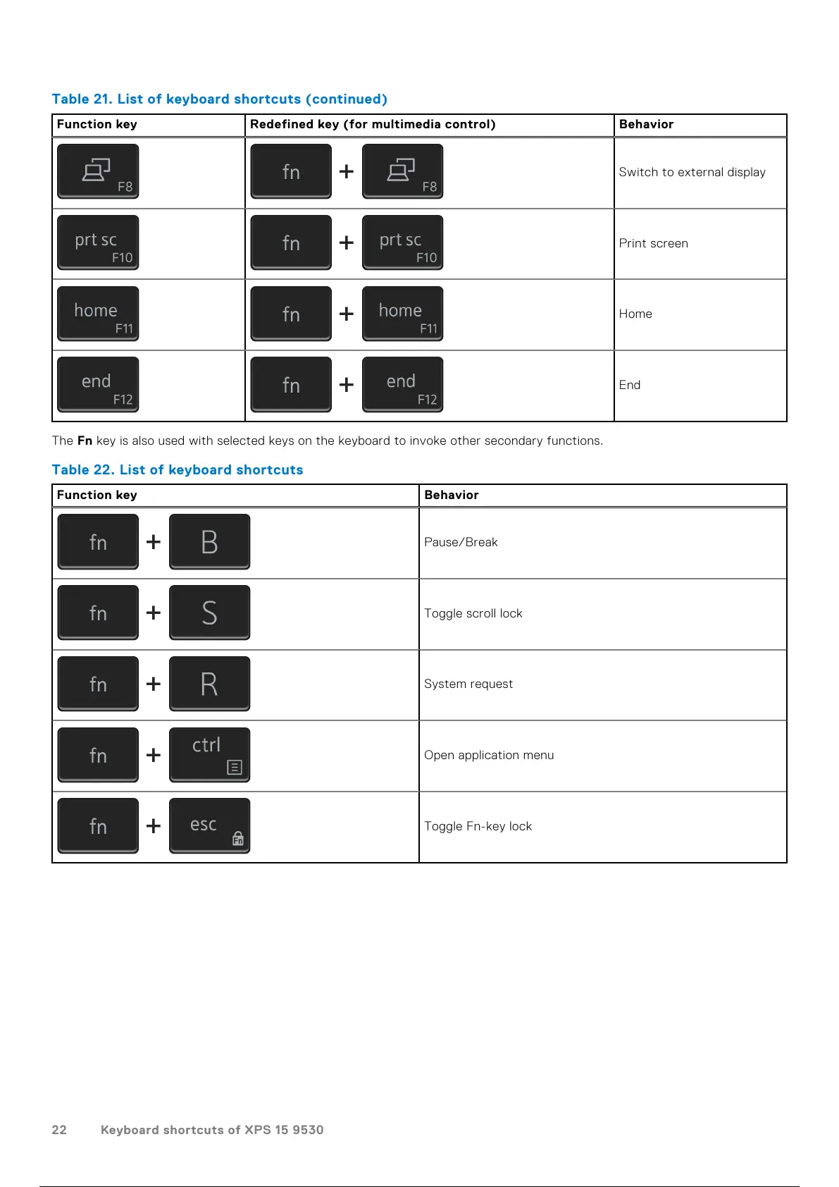 The Fn key is also used with selected keys on the keyboard to invoke other secondary functions.