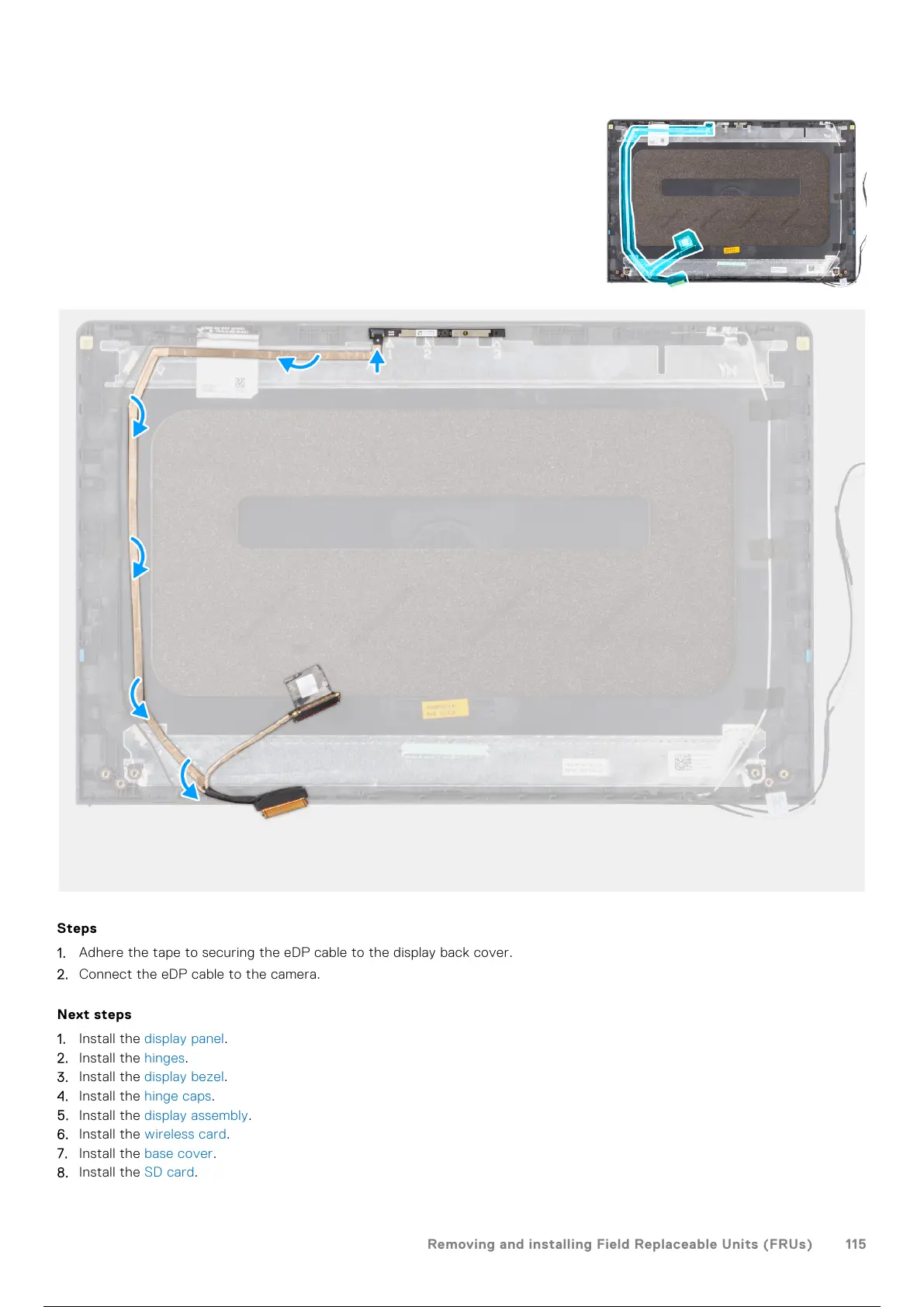 1. Adhere the tape to securing the eDP cable to the display back cover.