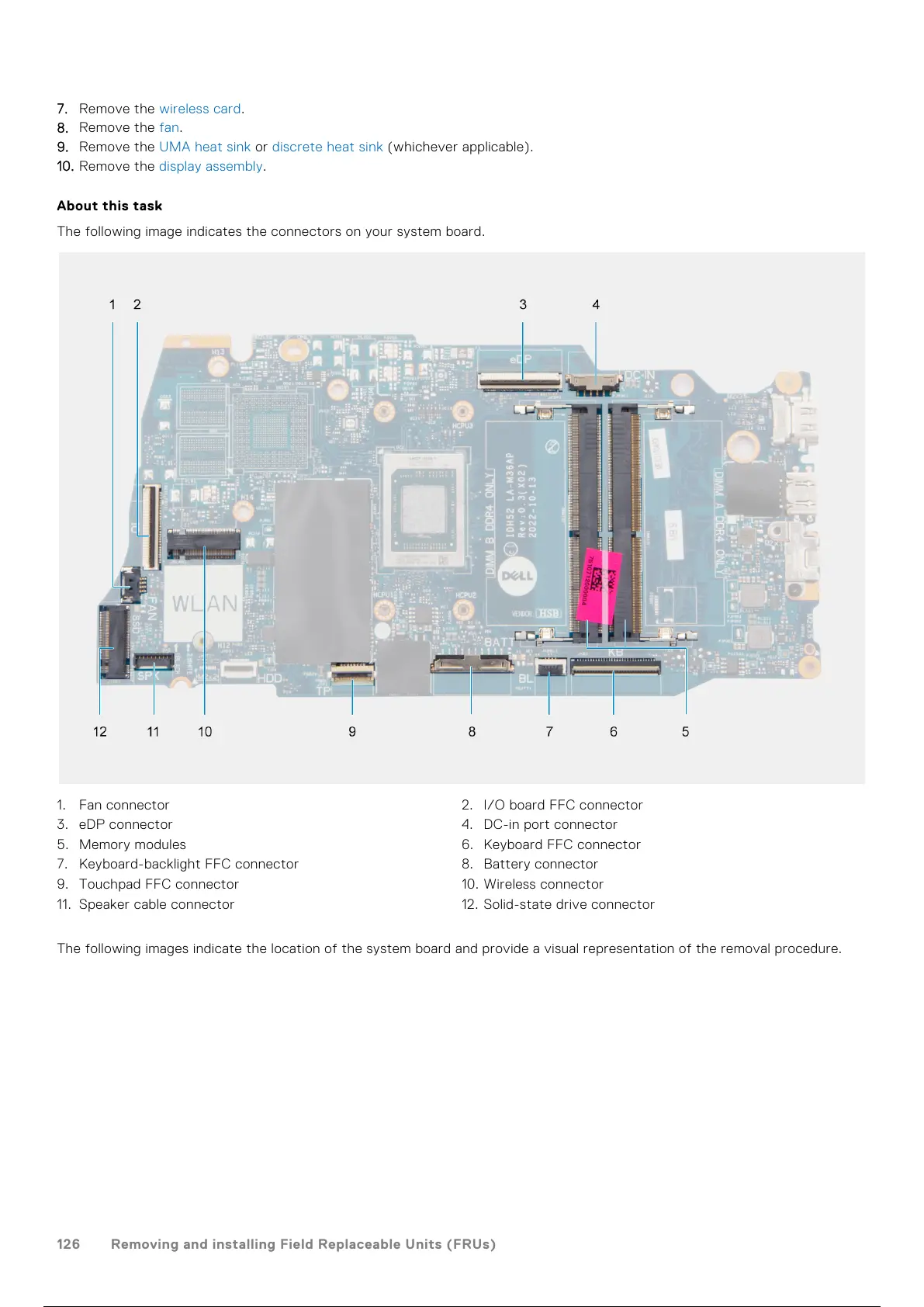 7. Keyboard-backlight FFC connector 8. Battery connector