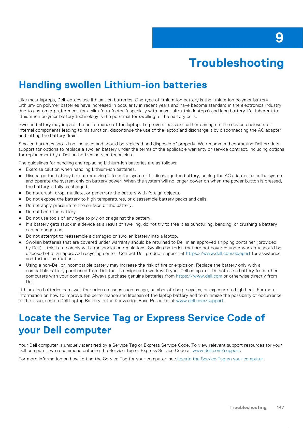 by Dell)—this is to comply with transportation regulations. Swollen batteries that are not covered under warranty should be