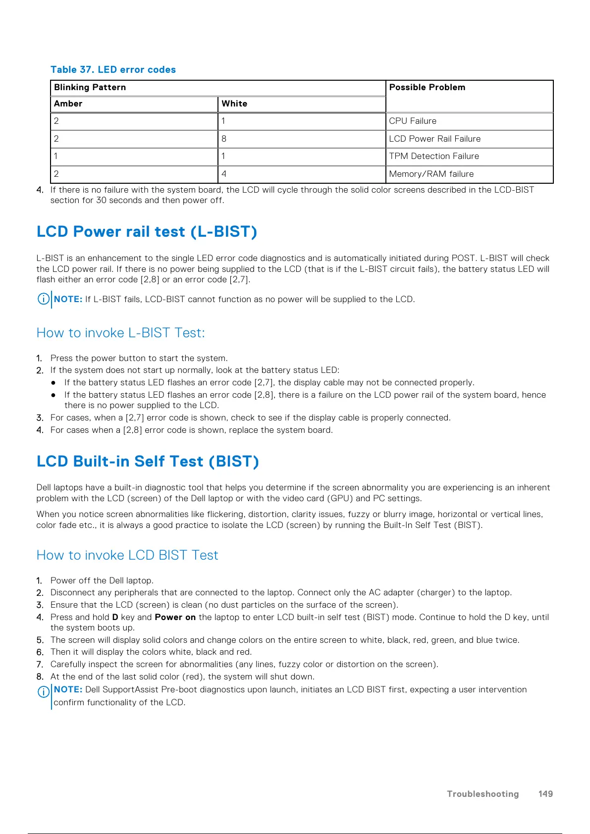 NOTE: If L-BIST fails, LCD-BIST cannot function as no power will be supplied to the LCD.