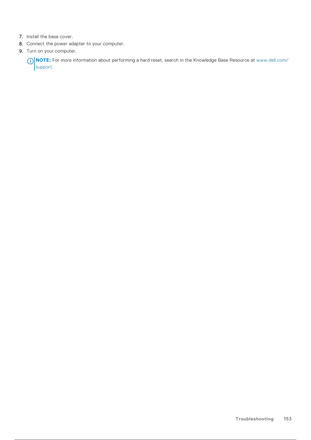 NOTE: For more information about performing a hard reset, search in the Knowledge Base Resource at www.dell.com/