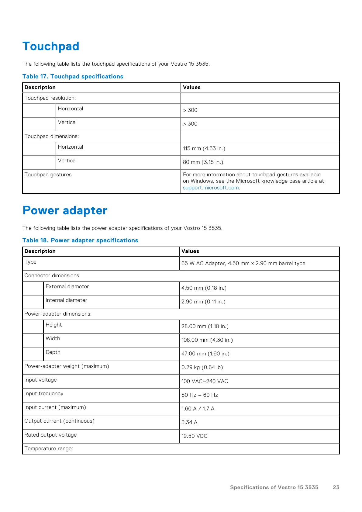 Specifications of Vostro 15 3535 23