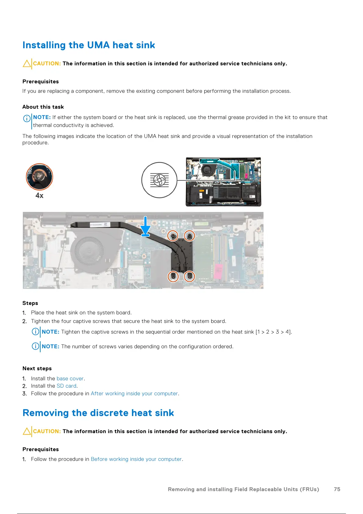 NOTE: Tighten the captive screws in the sequential order mentioned on the heat sink [1 > 2 > 3 > 4].