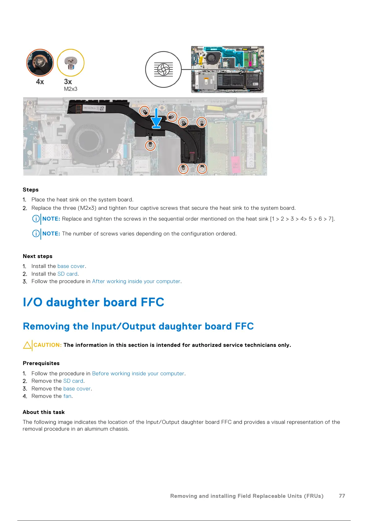 NOTE: Replace and tighten the screws in the sequential order mentioned on the heat sink [1 > 2 > 3 > 4> 5 > 6 > 7].