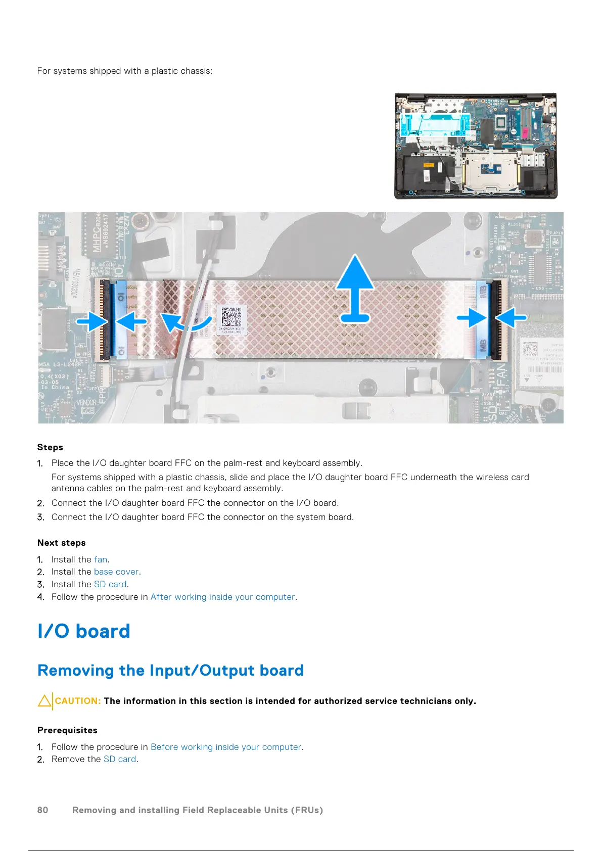 1. Place the I/O daughter board FFC on the palm-rest and keyboard assembly.