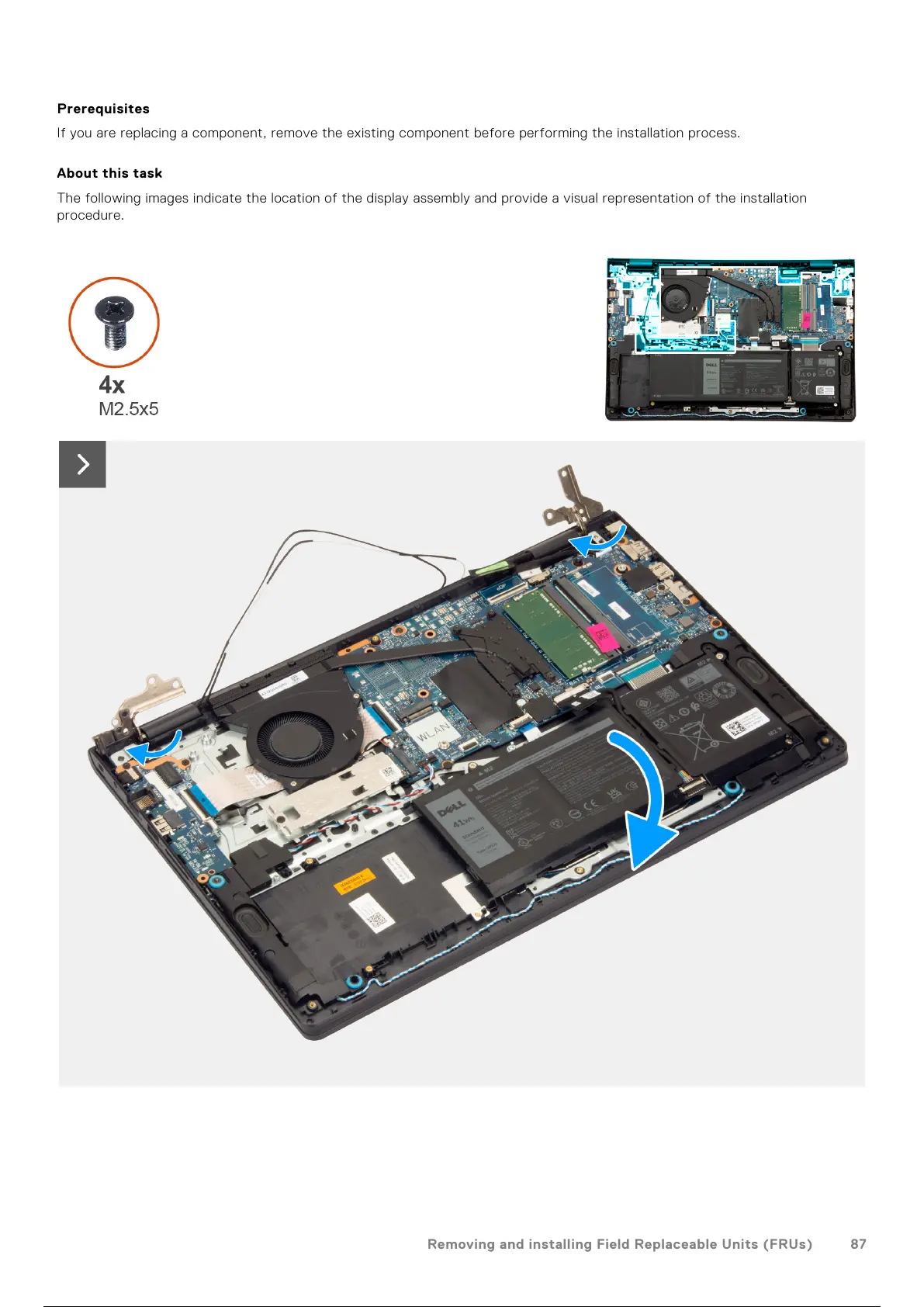 Removing and installing Field Replaceable Units (FRUs) 87