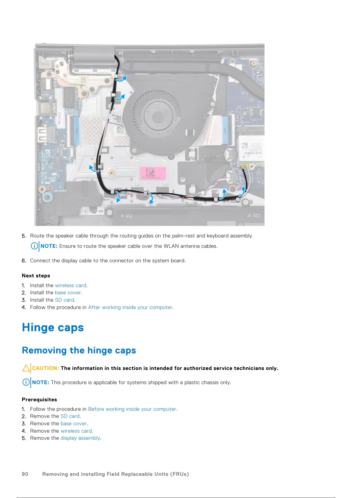 NOTE: Ensure to route the speaker cable over the WLAN antenna cables.
