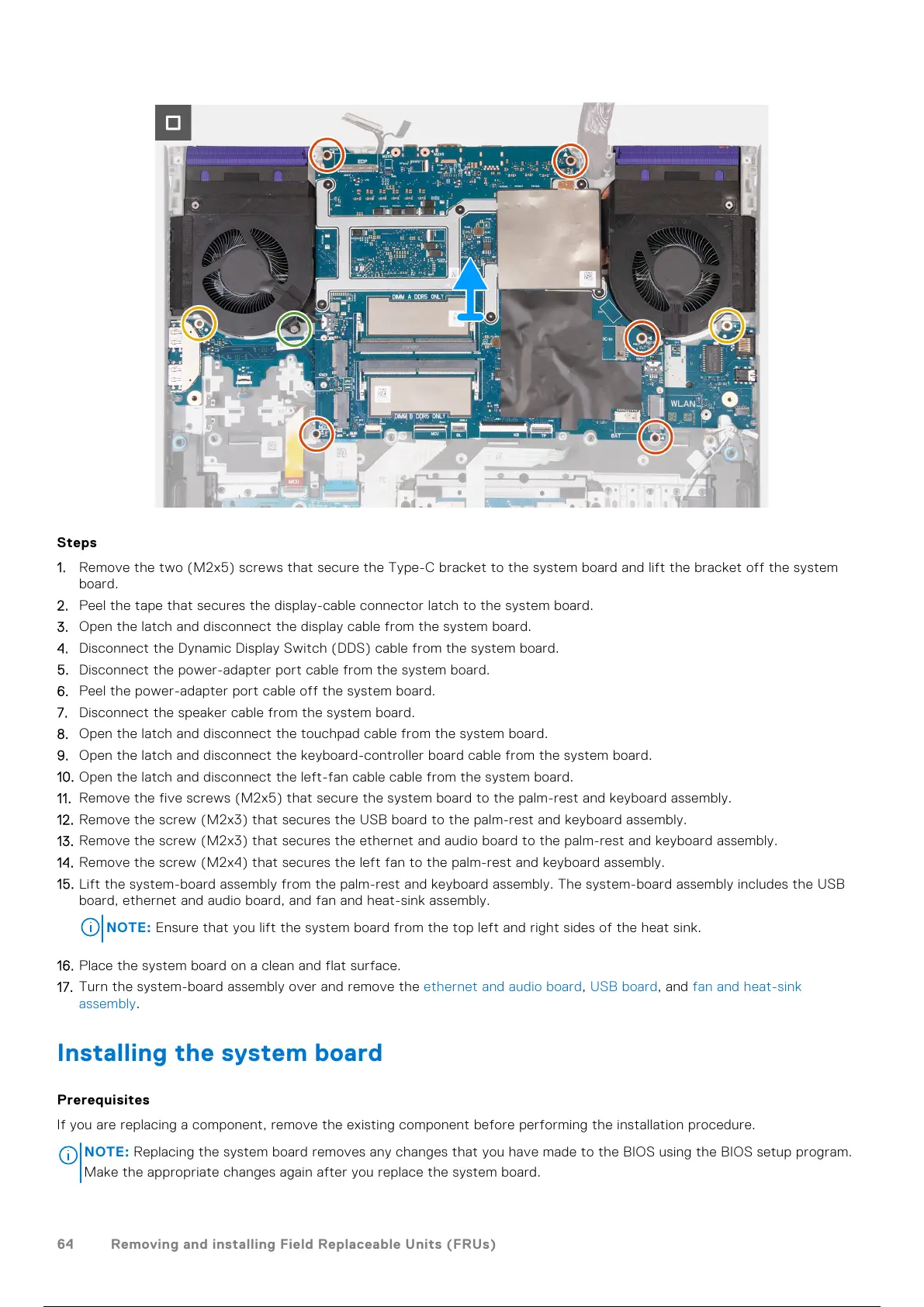 NOTE: Ensure that you lift the system board from the top left and right sides of the heat sink.