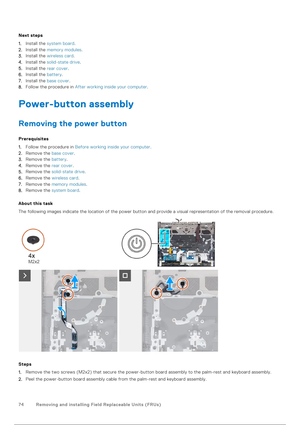 Dell NOT22398 - Power-Button Assembly; Removing the Power Button