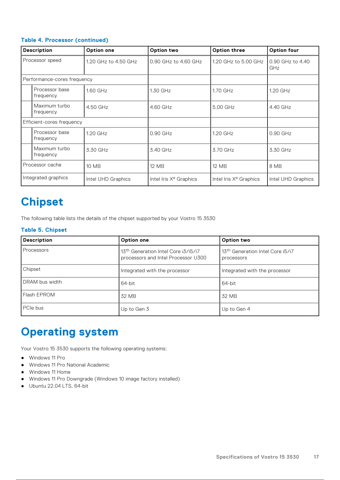 Your Vostro 15 3530 supports the following operating systems: