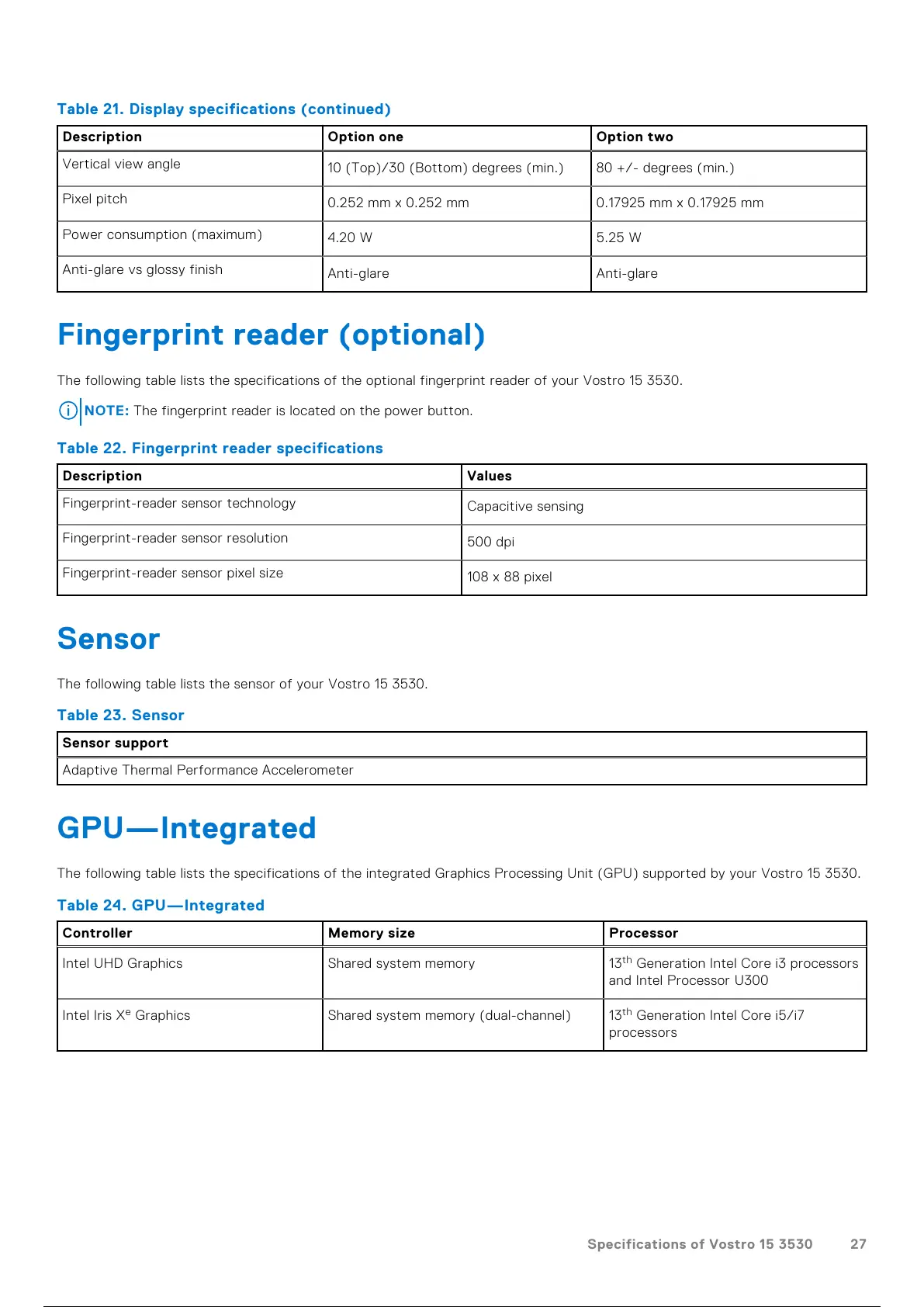 Specifications of Vostro 15 3530 27