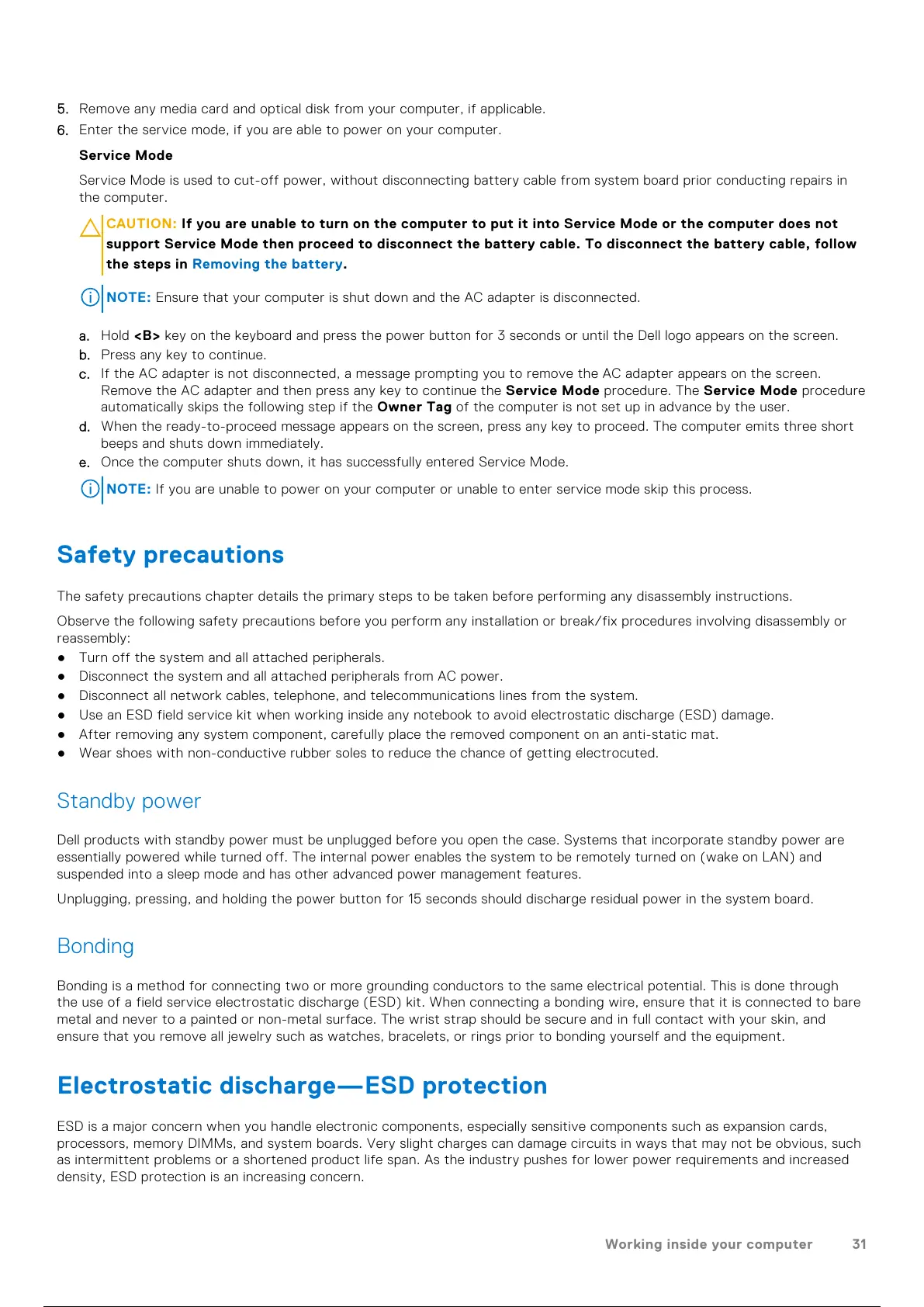 Service Mode is used to cut-off power, without disconnecting battery cable from system board prior conducting repairs in