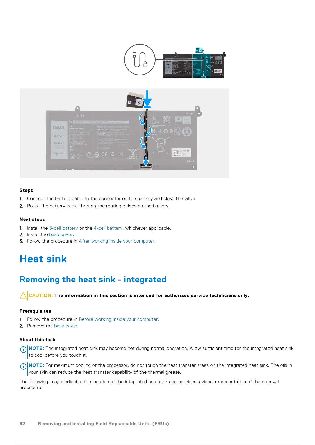 2. Route the battery cable through the routing guides on the battery.