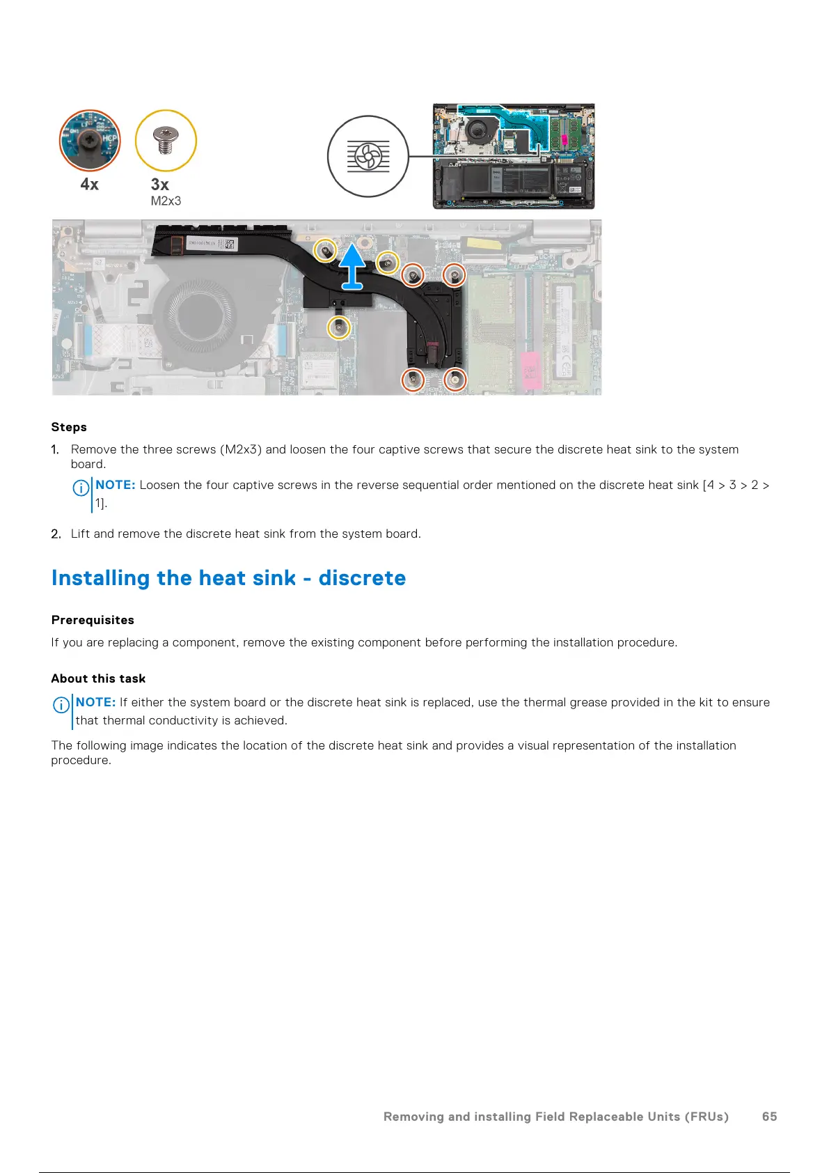 2. Lift and remove the discrete heat sink from the system board.