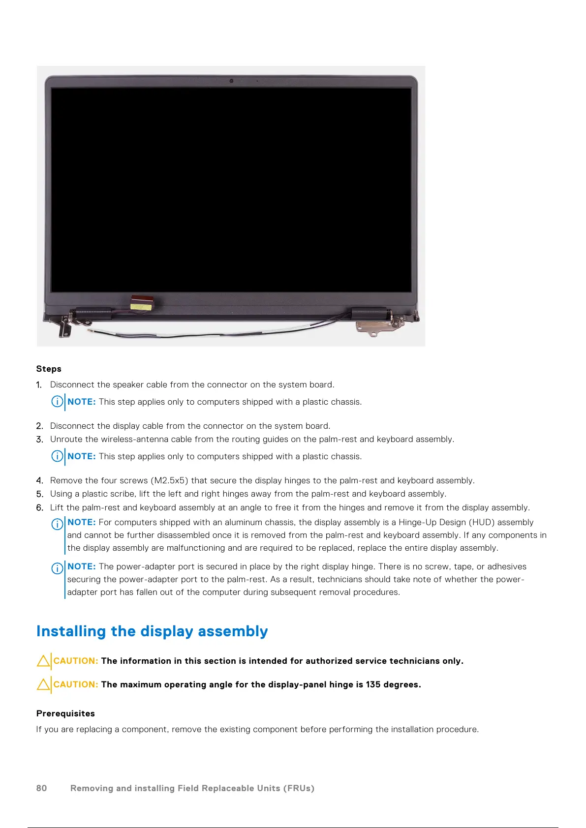 the display assembly are malfunctioning and are required to be replaced, replace the entire display assembly.