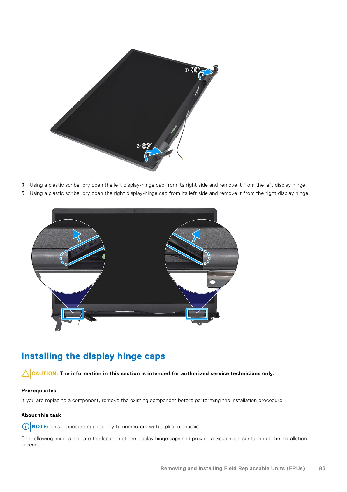 The following images indicate the location of the display hinge caps and provide a visual representation of the installation
