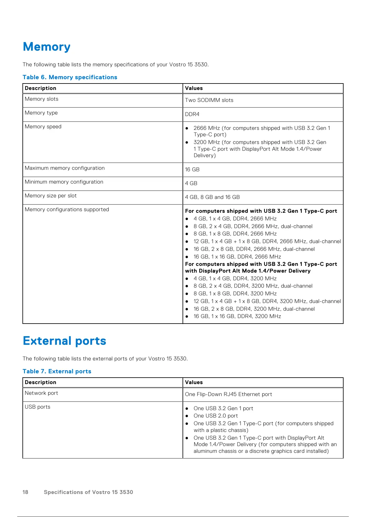 ● 2666 MHz (for computers shipped with USB 3.2 Gen 1