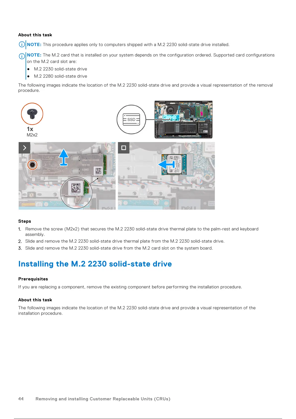 The following images indicate the location of the M.2 2230 solid-state drive and provide a visual representation of the removal