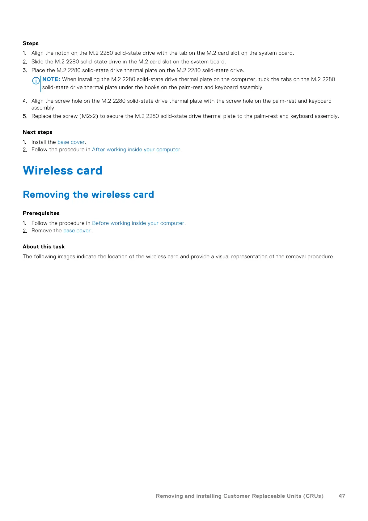 Dell NOT22747 - Wireless Card; Removing the Wireless Card